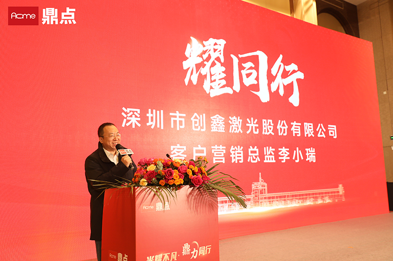 供應(yīng)商代表深圳創(chuàng)鑫激光戰(zhàn)略客戶營銷總監(jiān)李小瑞上臺致辭,表示將與鼎點激光繼續(xù)深化合作,共同推動激光裝備產(chǎn)業(yè)的發(fā)展和進步,為一線用戶帶來性能更好、價格更優(yōu)的產(chǎn)品。