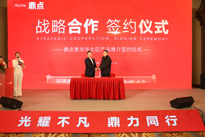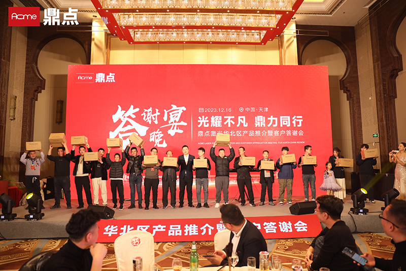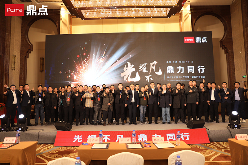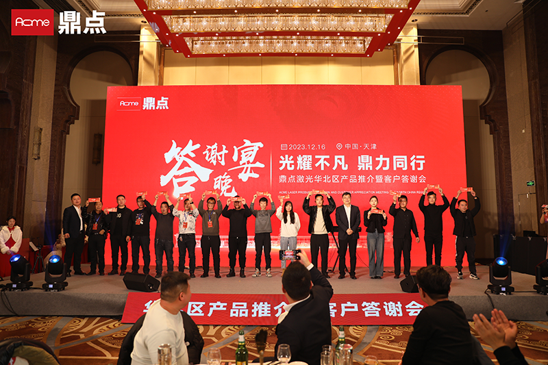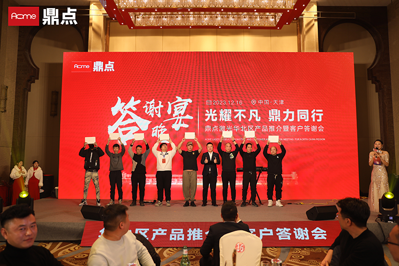光耀不凡,鼎力前行。12月16日,鼎點激光華北大區(qū)產(chǎn)品推介暨答謝會在天津隆重舉行。80余家客戶150余位代表出席活動并成功簽約。